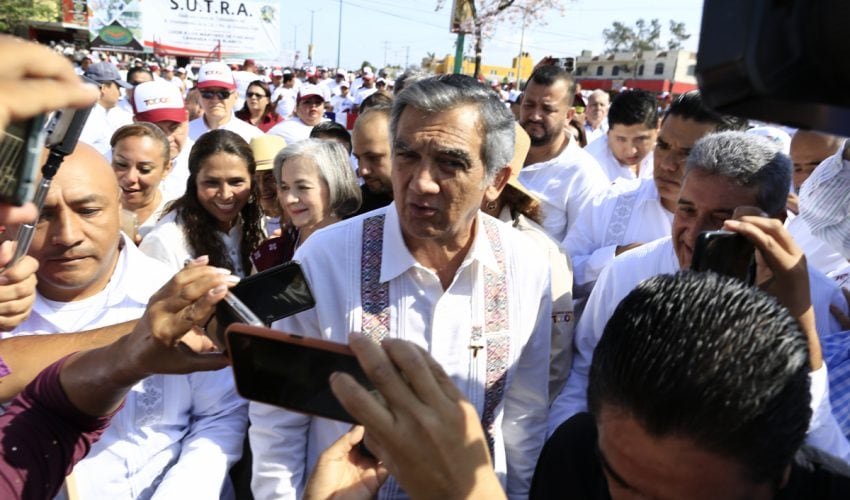 Antes de desfilar con los trabajadores del sur del Estado, el gobernador señaló que la Federación y el Estado están reforzando la vigilancia y que la prioridad es cuidar y proteger a la población de las luchas que libran los grupos del crimen.