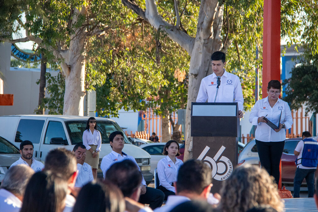 Al presidir en el campus Victoria la ceremonia de honores a la bandera nacional, el