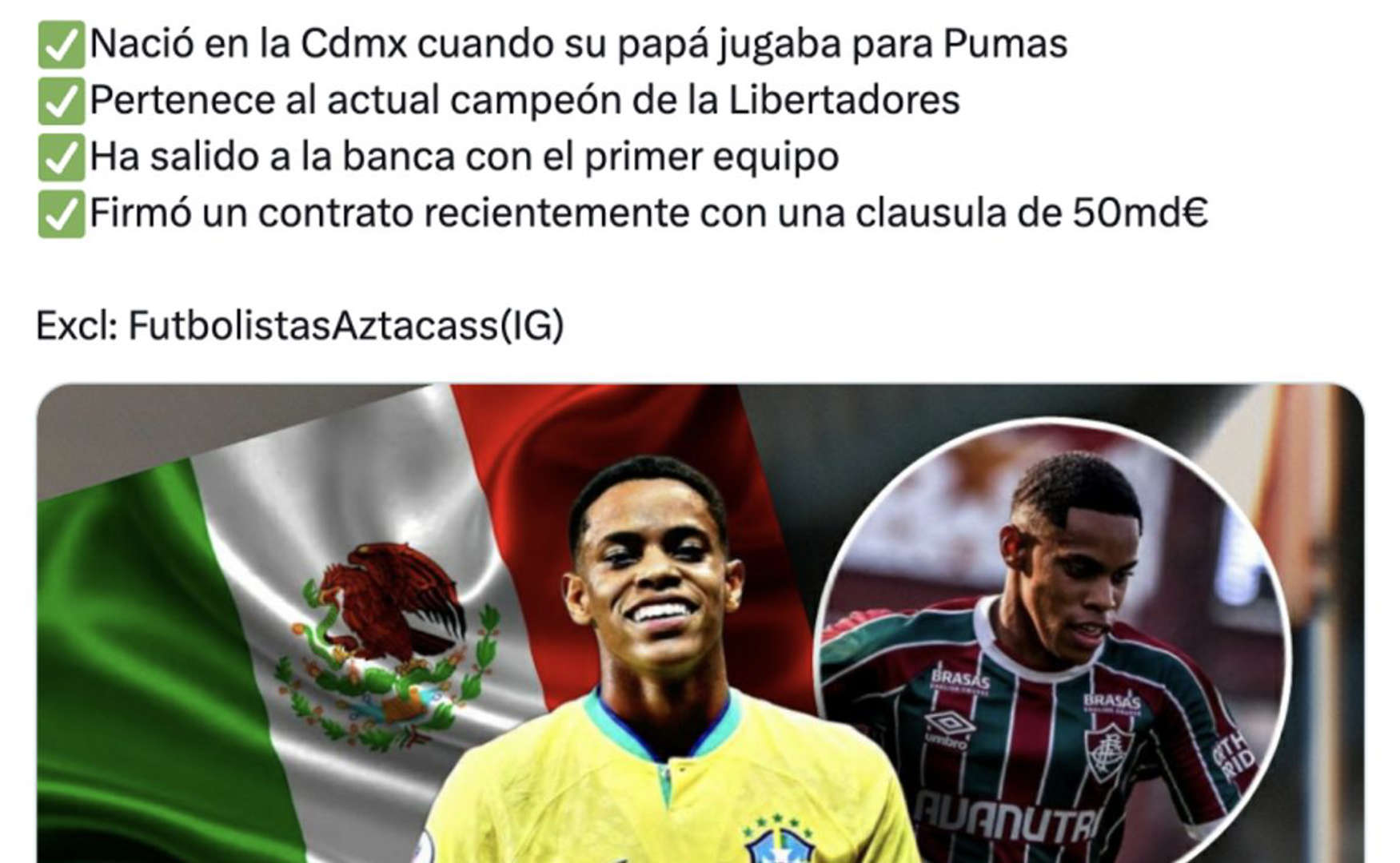 De acuerdo a la información de Futbolistas Aztecas, se trata de Matheus Dos Reís, un juvenil de apenas 16 años de edad, quien ya ha sido considerado con el primer equipo del Fluminense en algunos partidos, aunque ha permanecido en la banca.