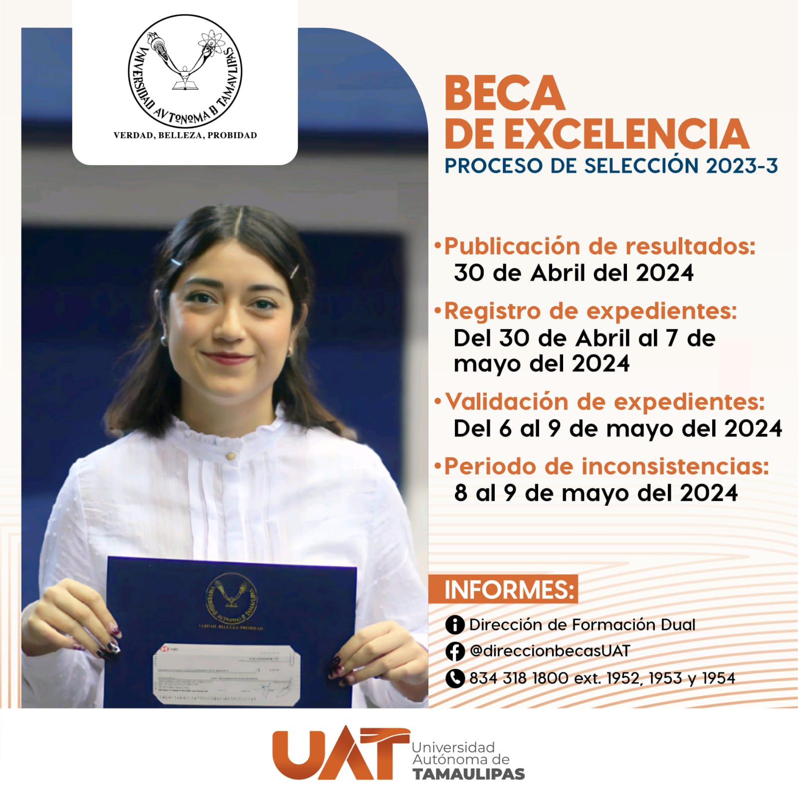 Queremos reconocer tu mérito académico y con las Becas de excelencia podemos ayudarte a cumplir tus metas y objetivos universitarios. Hoy es la publicación de resultados de la Beca de Excelencia Proceso de Selección 2023-3 Podrás consultar los resultados a través de la pagina oficial de la Dirección: https://direccionbecas.uat.edu.mx/ Carga de documentos: https://alumnos.uat.edu.mx/ Te invitamos […]