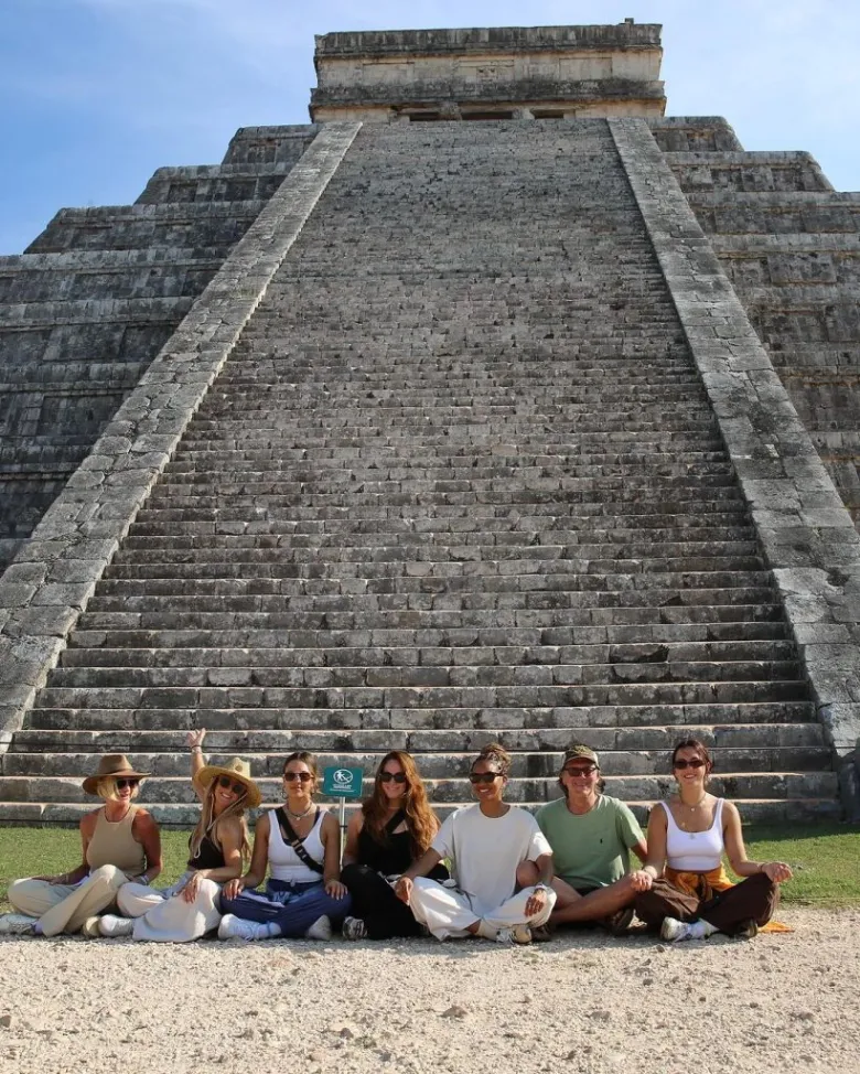 “Estamos en Chichén Itza, es una de las siete Maravillas del Mundo. Vamos a hacer una ceremonia. Quería venir aquí desde hace varios años, estoy muy emocionada”.