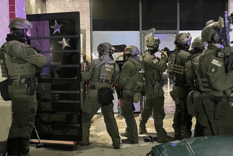 Imágenes difundidas por la DEA mostraron a los agentes ingresando al establecimiento, rompiendo ventanas y ordenando a los asistentes salir con las manos en alto. Muchos intentaron huir del sitio tras el operativo.