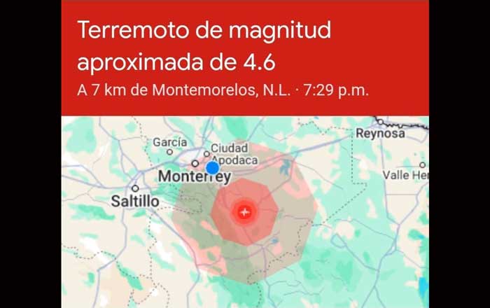 Los municipios que sintieron el sismo son: Monterrey, Apodaca, Montemorelos, Juárez, Galeana, Zuazua, Iturbide, Cerralvo, Doctor González, Cadereyta, Santiago, Hualahuises, Ciénega de Flores y General Bravo.