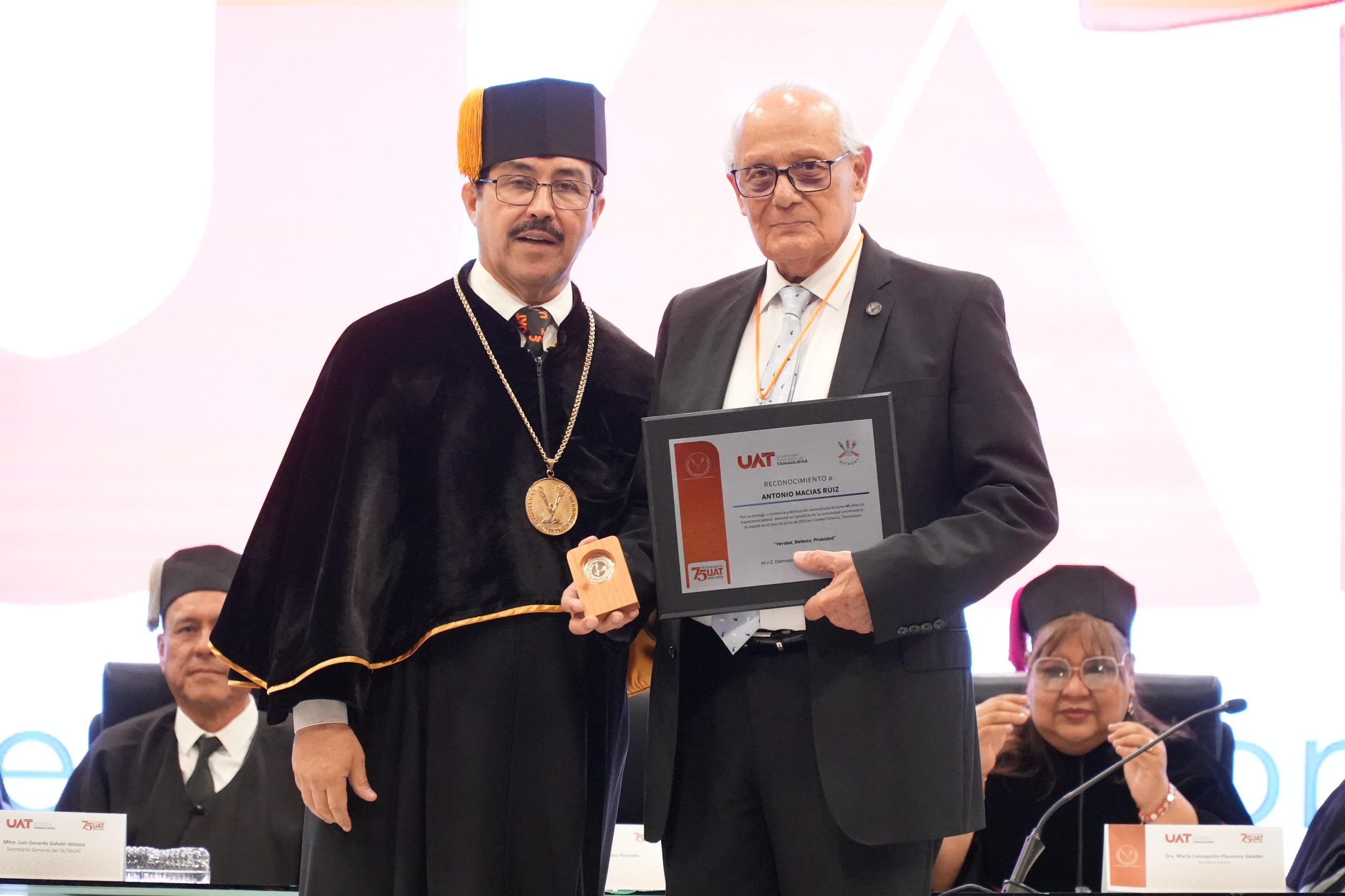 Como parte del homenaje, el rector entregó un reconocimiento especial al Dr. Fidel Infante Rodríguez, de la Facultad de Medicina Veterinaria y Zootecnia, por sus 31 años de destacada trayectoria, a quien describió como un ejemplo de vocación, liderazgo e impacto social.