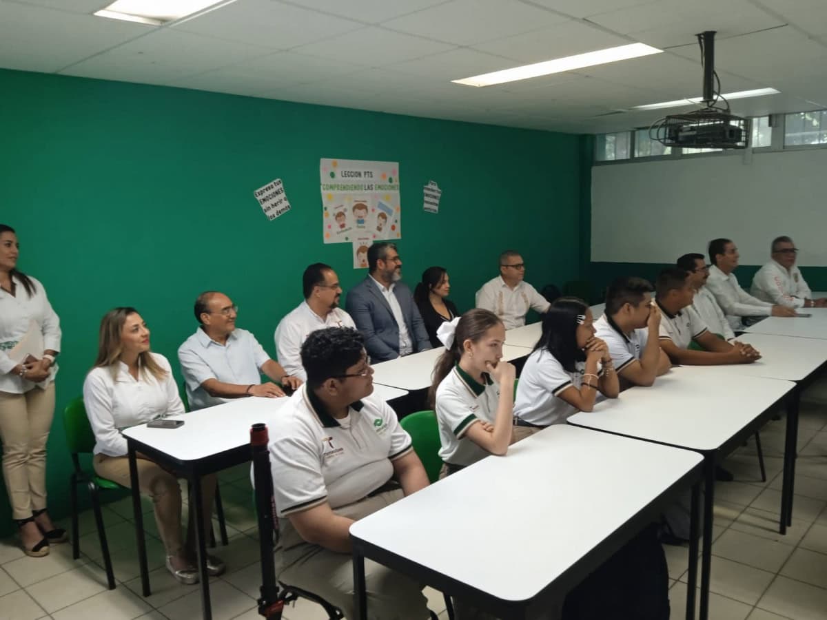 Igor Crespo Solís, subsecretario de Educación Media Superior y Superior en la entidad, acompañado por Fernando Arizpe Pedraza, director general de CONALEP Tamaulipas, visitaron este espacio educativo, en donde sostuvieron un diálogo cercano con las alumnas y alumnos, escuchando sus experiencias y perspectivas sobre su formación académica.