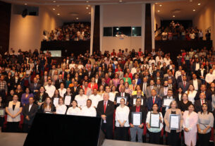 Acompañado de su esposa, la Lic. Isolda Rendón de Anaya, presidenta de Familia UAT, e integrantes de su gabinete, el rector hizo entrega de reconocimientos al personal sindicalizado de las secciones centro, norte, sur y Mante, por su trayectoria de servicio en la institución.